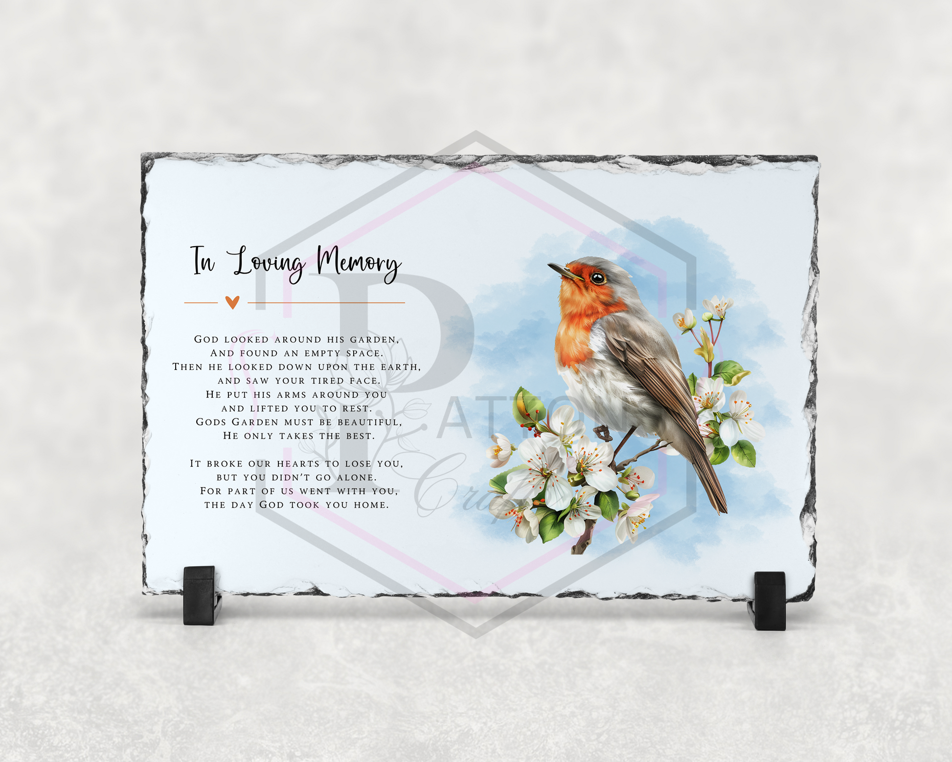 If personalising the personalised text will be added to the bottom of the Verse on a separate paragraph. If you would like the text Instead of the "In loving memory" title you MUST specify at the time of ordering.