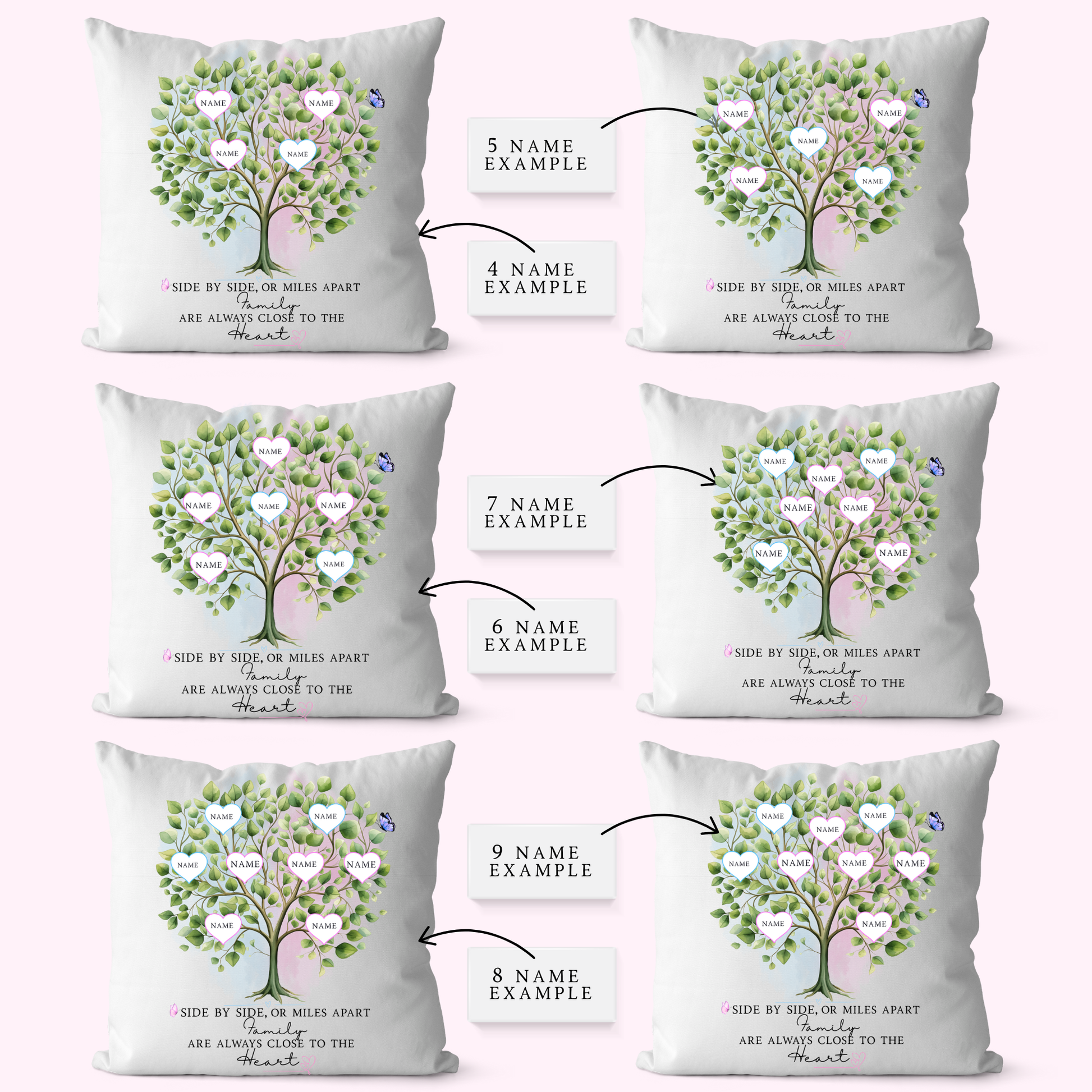 Celebrate the love that keeps families connected with this beautiful personalised family tree cushion, featuring the heartfelt message: