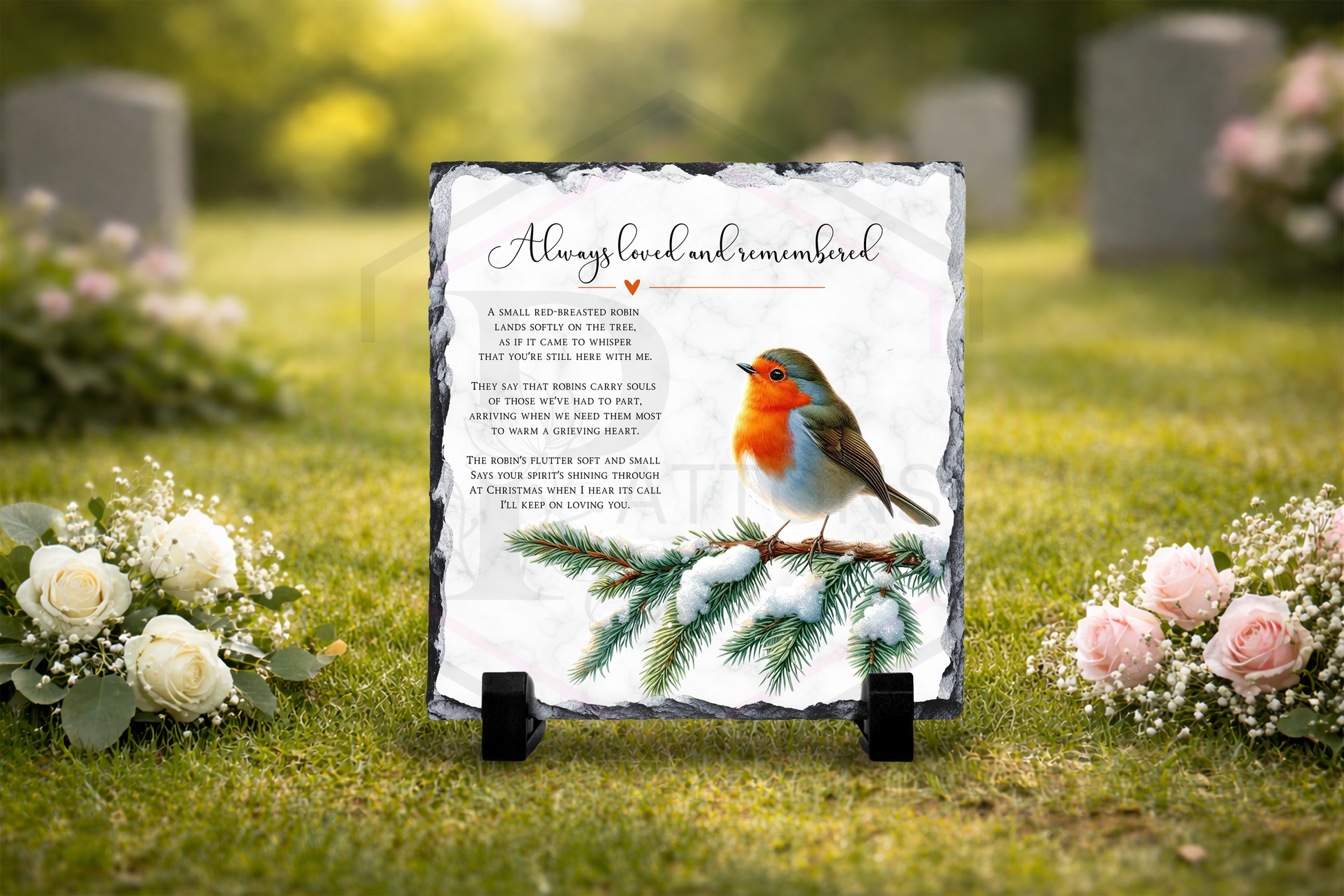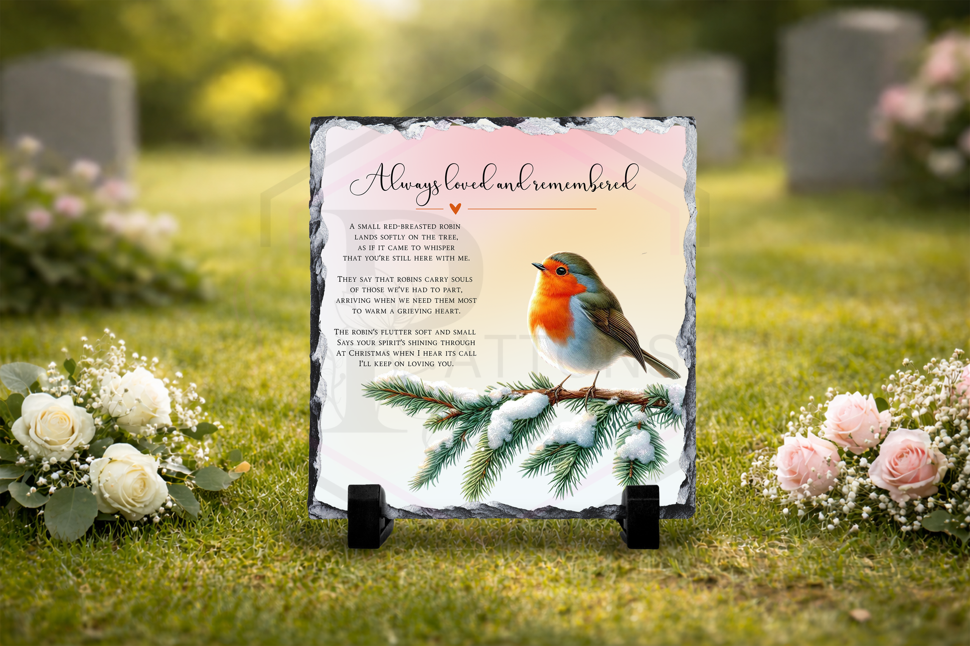 This Robin Memorial Slate Plaque is a meaningful tribute, designed to bring comfort and remembrance. Robins are widely seen as a symbol of loved ones visiting from heaven, making this piece especially heartfelt.