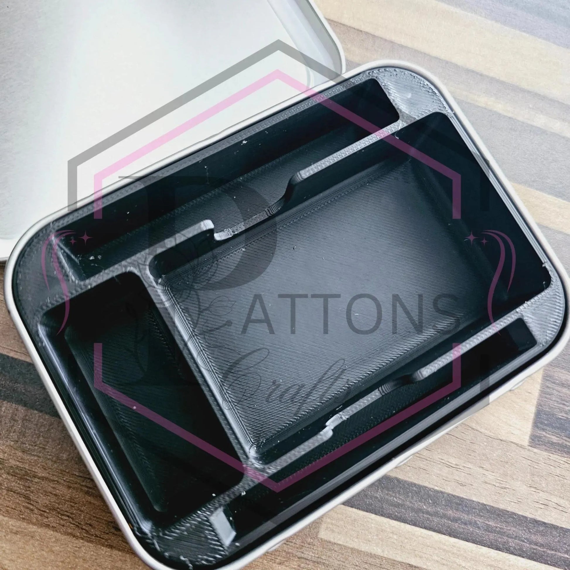 This unique tin organiser is custom made to fit our tobacco tin collection, With four individual compartments, two small compartments made to fit your lighter and rolling papers perfectly, a medium compartment for filter tips and a large compartment for tobacco, keeping everything neat and all in one place!
